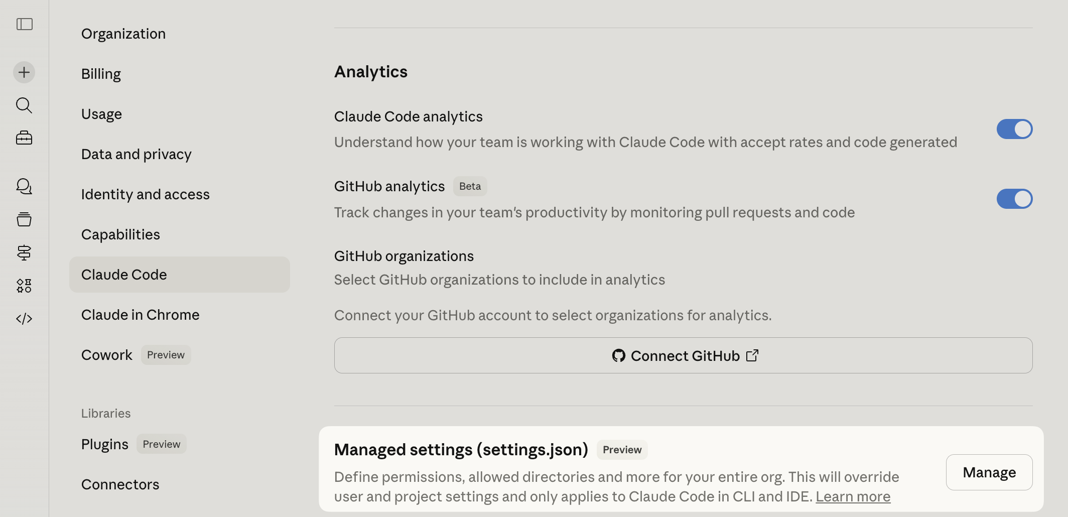 ### Managed settings in Claude.ai