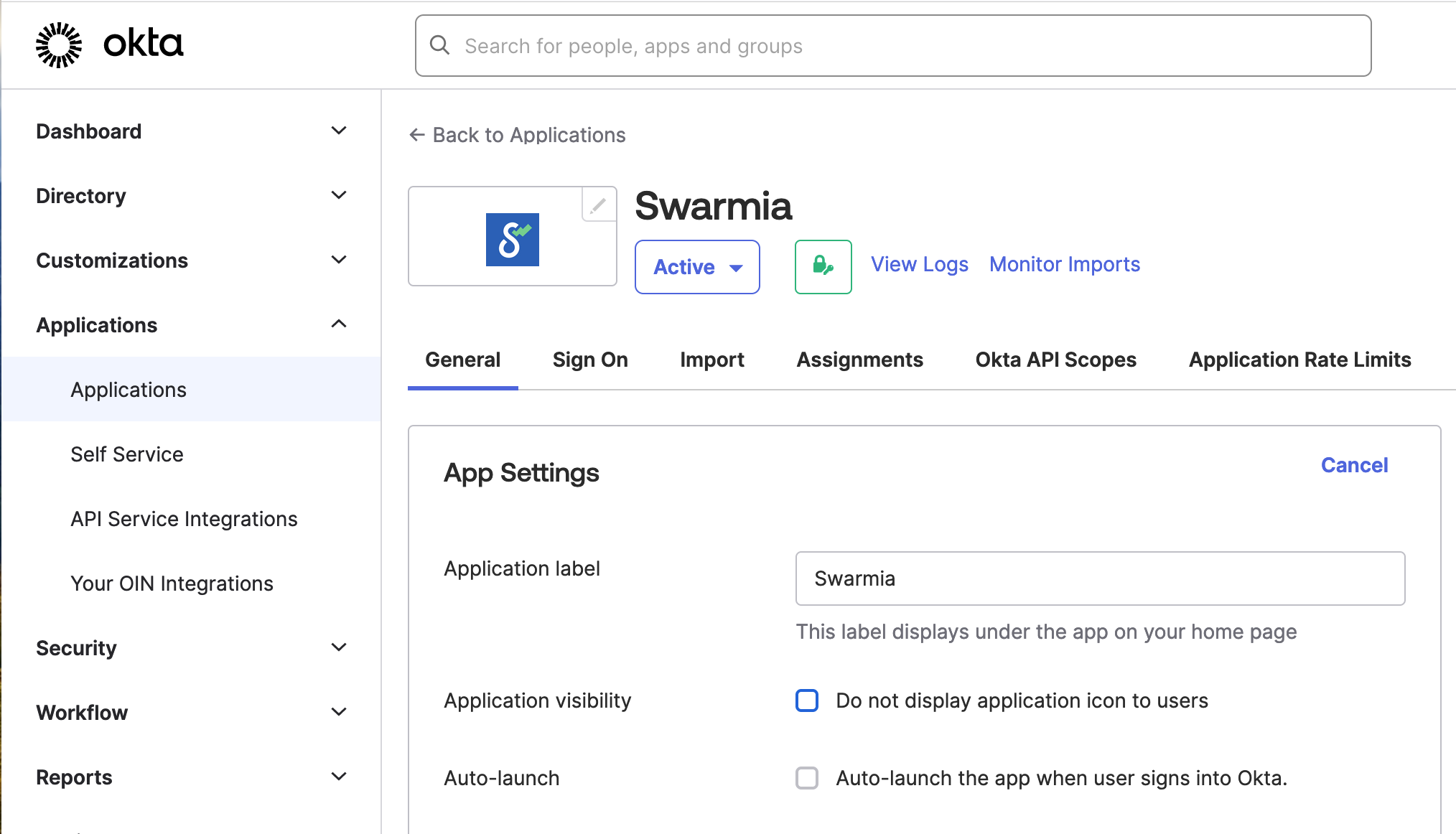 Instructions for enabling Okta Single Sign-On with Swarmia